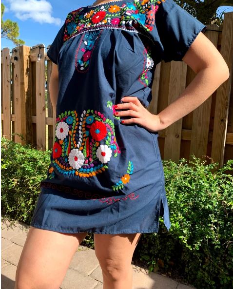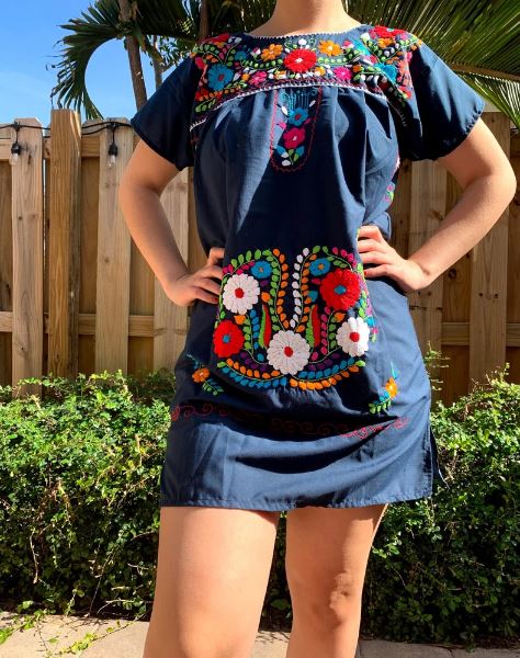 Vestido Hecho A Mano - Estilo Casual. Este es un hermoso vestido corto bordado de flores multicolores con mangas cortas. Color: azul marino Talla pequeña Patrón: Flores Algodón: 65% Poliéster: 35% Si quieres saber más sobre el Vestido, envíanos un...View more